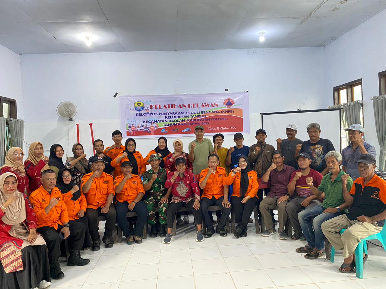 TOLITOLI Suluh Merdeka — Badan Penanggulangan Bencana Daerah (BPBD) Kabupaten Tolitoli terus memperkuat kesiapsiagaan masyarakat terhadap potensi bencana. Upaya ini diwujudkan melalui pembentukan Kelompok Masyarakat Peduli Bencana (KMPB) di Kelurahan Tambun, Kecamatan Baolan, Kamis (16/10/2025).